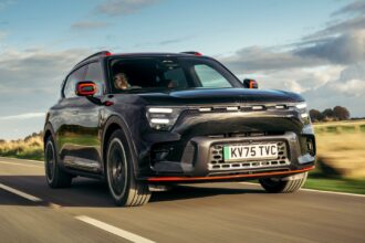 As vendas lentas e as repetidas pausas de produção sinalizaram que a marca precisava conhecer compradores onde estavam, principalmente aqueles que ainda não estão prontos para serem cheios de EV. Isso significava redesenhar partes da plataforma do EV para acomodar um pequeno motor e os sistemas de refrigeração que o acompanham. A única grande mudança visual é uma grade frontal funcional adicionada para as necessidades de resfriamento do híbrido. Caso contrário, o carro mantém seu estilo limpo da era elétrica.