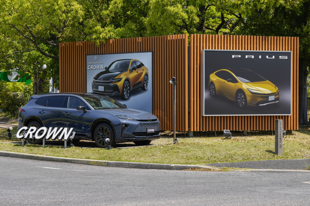 Uma coroa da Toyota exibida fora da fábrica de Tsutsumi da empresa em Toyota, Aichi Prefeitura, Japão