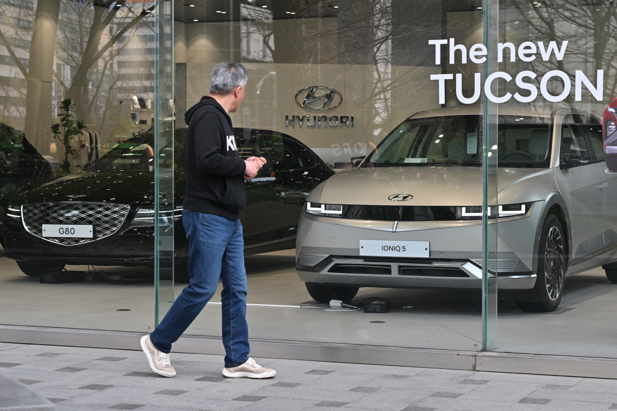 Um homem passa em frente a uma concessionária de carros do Hyundai Motor em Seul em 27 de março de 2024.
