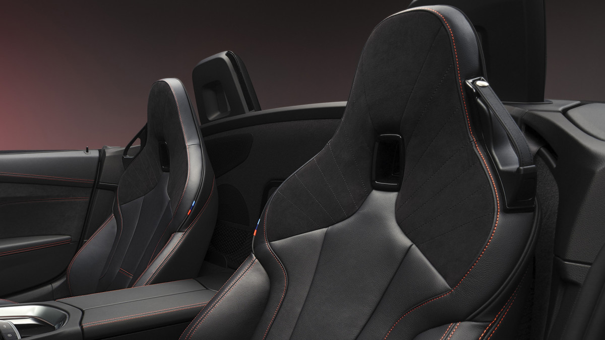Por dentro, o Z4 Final Edition recebe couro Vernasca escuro e acabamento em Alcantara com costura vermelha contrastante, acabamento interno preto de alto brilho e costura vermelha. Os tapetes têm debrum vermelho e os cintos de segurança têm o acabamento tricolor M para um toque de cor bem-vindo, enquanto as soleiras das portas recebem uma inscrição especial Z4 Final Edition. Disponível apenas em um acabamento de alta especificação, a Edição Final recebe um Harman Kardon sistema de somo Pacote de Assistência à Condução e o Pacote Premium como padrão. Isso inclui recursos como detecção ativa de ponto cego, controle de distância de estacionamento, iluminação ambiente e head-up display.