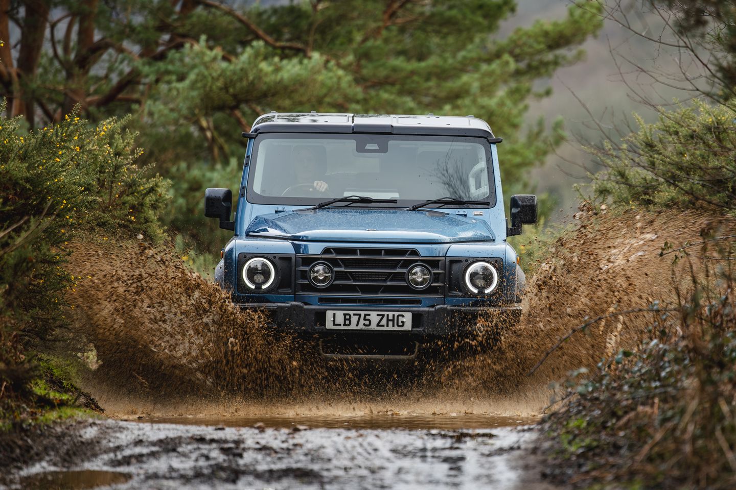 Desta vez, significa direcionar a frente para algumas pistas verdes. Não é o tipo de off-road que realmente testaria a coragem do Ineos (ou do metal, nesse caso), mas uma boa indicação do que pode ser alcançado sem absolutamente nada alterado. Sem bloqueios de diferencial ou mexer na faixa baixa, apenas sair da trilha batida para algo mais testador. Obviamente, o Granadeiro leva tudo com calma, porque não é nada mais exigente do que o lamacento e viscoso Surrey, mas sua habilidade permanece considerável.