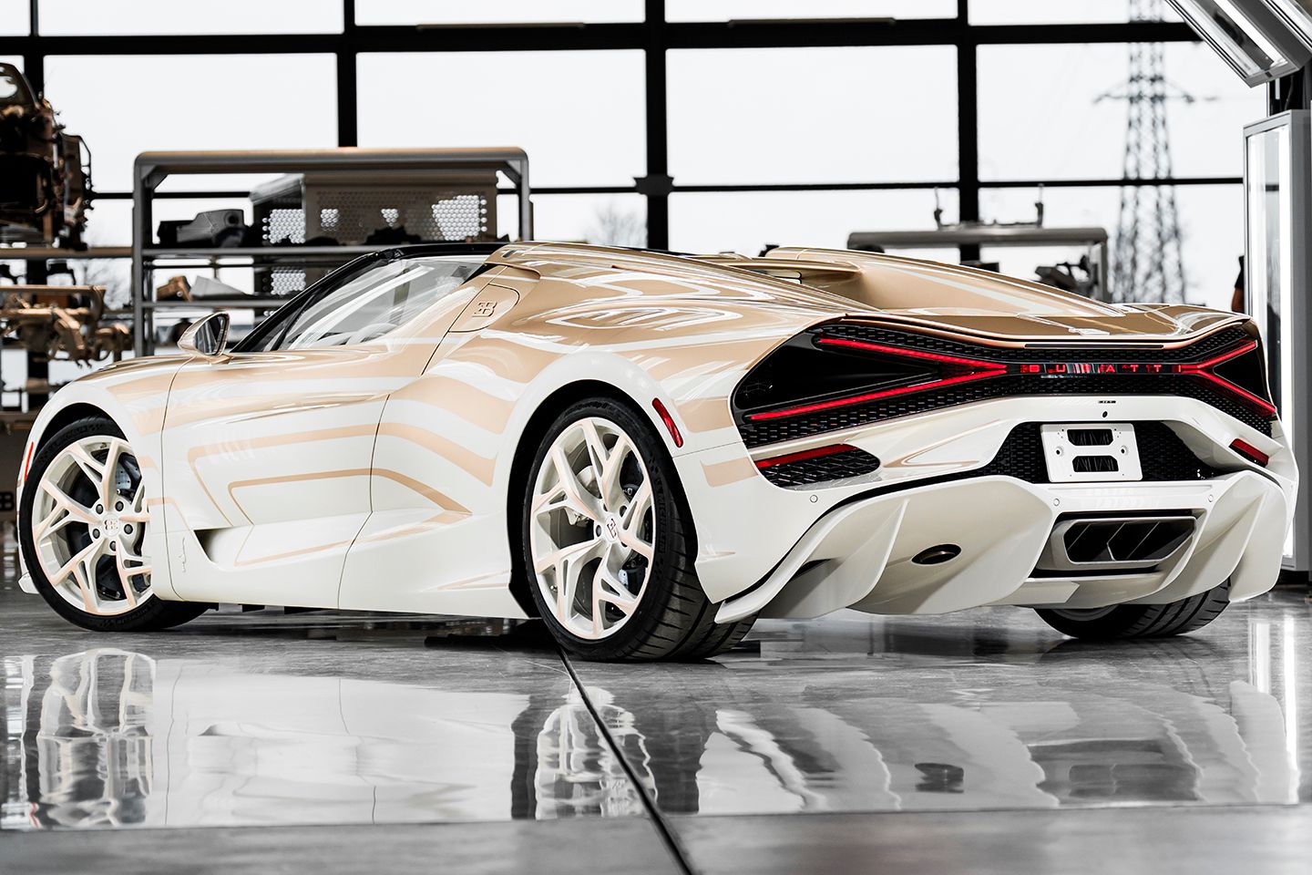 Além disso, ao passar centenas de horas pintando, é melhor comemorar ao máximo. Portanto, as rodas não são douradas e brancas, mas são uma “mistura de tintas especialmente curada” que visa combinar o melhor de ambos. Novamente, é diferente de tudo que já vimos da Bugatti. E o pior pesadelo de um manobrista.