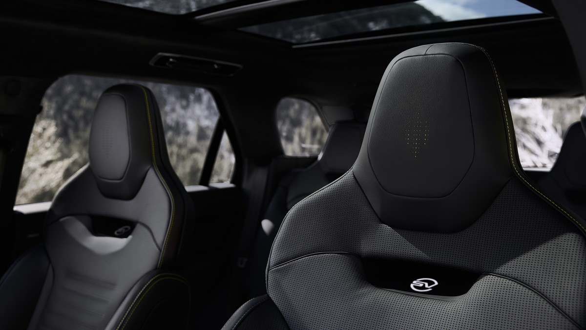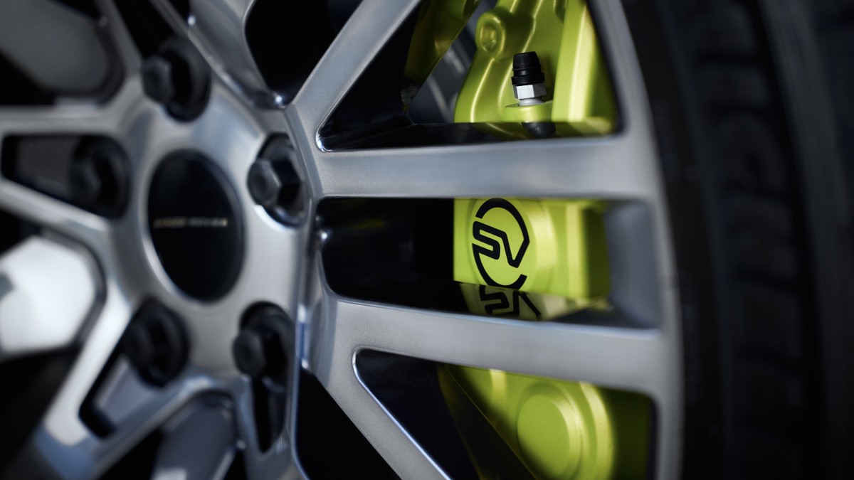 Há mais Nano Yellow no interior, onde é usado como costura contrastante para o estofamento em couro Ebony. Você também obtém acabamentos em folheado de bétula preta e alguns logotipos Winter Dusk. Para completar, Land Rover está lançando um conjunto de esquis Bomber sob medida com uma bolsa personalizada.
