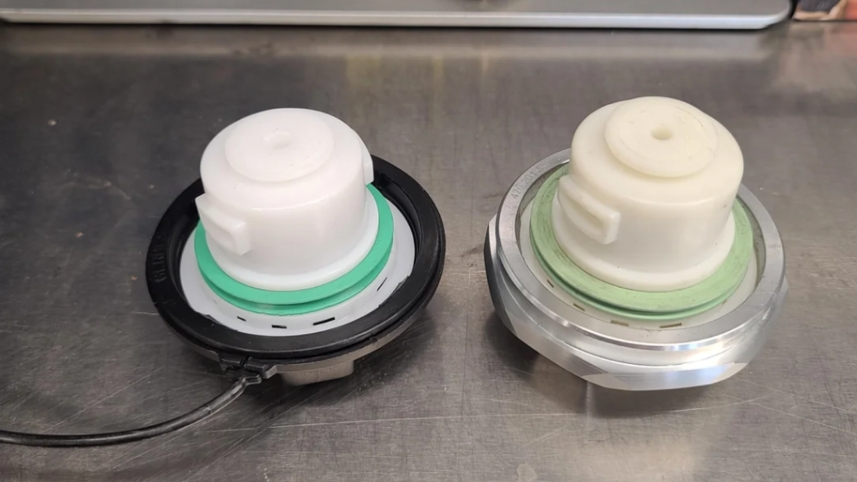Em vez de solicitar a substituição de fábrica, o técnico inspecionou a tampa com defeito mais de perto e notou marcações “FoMoCo” nos componentes plásticos internos, indicando um link para Ford Companhia Motora. Essa descoberta levou a uma solução alternativa: adquirir uma tampa de combustível compatível de um Ford Focus por cerca de US$ 40.
