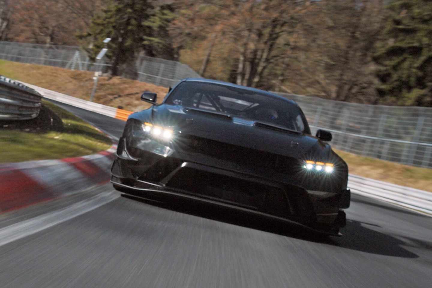 Isso significa que aqui está um Ford Mustang que pode rodar em 6:40.835, e você pode apostar que eles esperaram anúncio da Porsche de hoje para confirmar isso. O tempo GTD anterior foi 6:52.072. Para qualquer coisa ostensivamente legal na estrada, rodar tão rápido é ridículo; que sejam quase duas toneladas de Mustang é inacreditável. Existem algumas ressalvas, no entanto (como sempre). Veja, o carro usado para a tentativa não era, estritamente falando, uma máquina legal de rua, o que significa que será classificado na seção Pré-Produção/Protótipo da tabela de classificação de Nurburgring, que em breve se parecerá com o antigo quadro TG Power Lap. Isso porque ele antecipa algo chamado Mustang GTD Competition, um carro que a Ford diz vai vender – ‘a ser oferecido no futuro como uma edição especial, modelo legal de rua disponível em quantidades estritamente limitadas e serializadas’ – mas que ainda não está pronto para uso nas estradas.