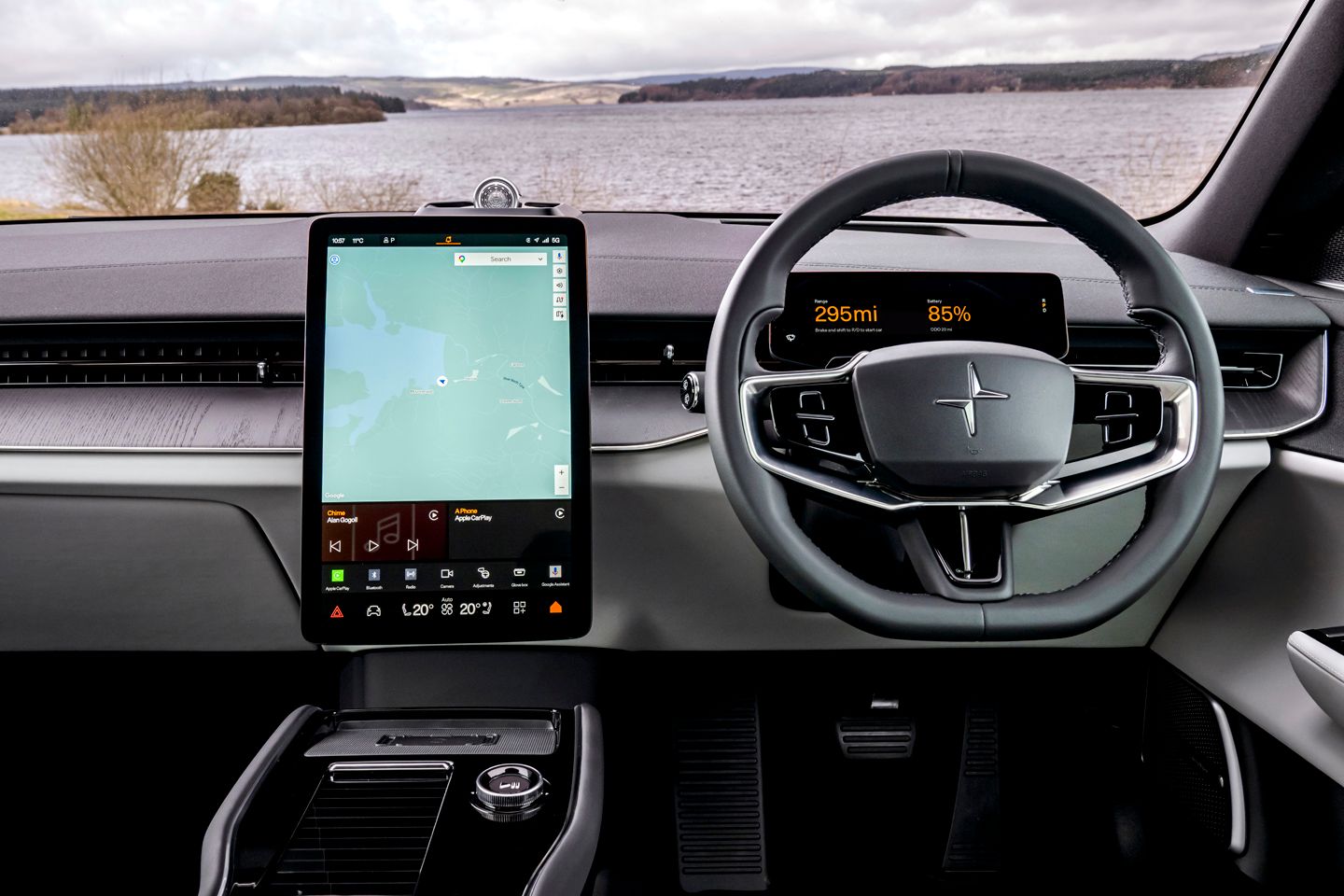 Com muito comprometimento, é claro, o Polestar 3 começa a revelar seu peso, e o passeio certamente poderia ser mais calmo em superfícies quebradas. E dado quanto amor foi claramente dispensado à forma como o carro cobre o terreno, é fácil ficar irritado porque há apenas uma dimensão no seu envolvimento com seu trem de força. Samson experimentou o Hyundai Ioniq 5 N (e seus sons e mudanças de marcha virtuais), mas permanece inflexível de que a Polestar deve seguir um caminho diferente.