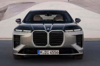 Tanto o modelo Série 7 movido a gás quanto o i7 elétrico ainda possuem grandes grades em forma de rim, que são iluminadas com o recurso Iconic Glow da BMW, mas os radares, sensores e bicos de lavagem agora estão melhor escondidos.